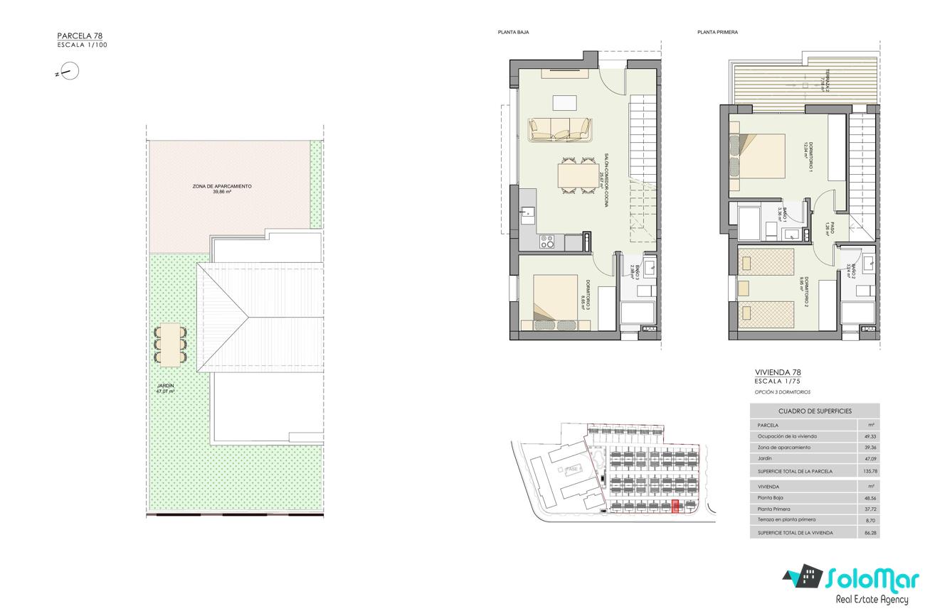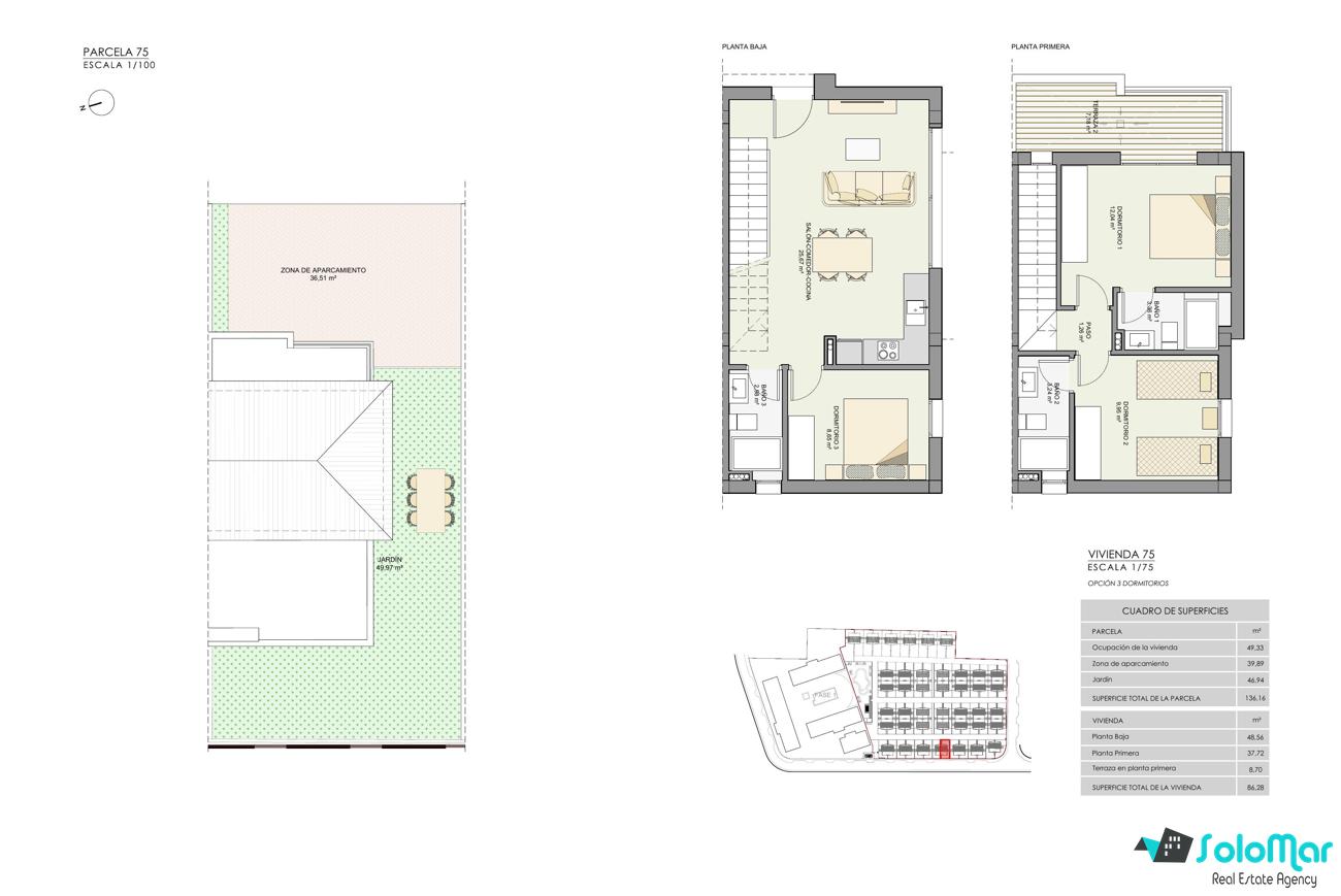 Excellent 94 m² semi-detached homes with 2 or 3 bedrooms, terrace and garden.
