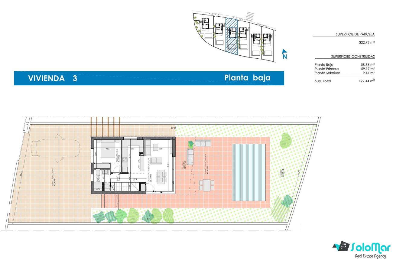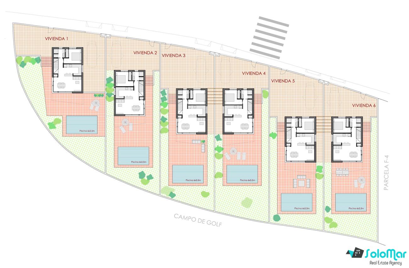 Exclusive villas for sale with private pools on plots starting at 303 m², located next to a prestigious golf course in Pilar de la Horadada.
