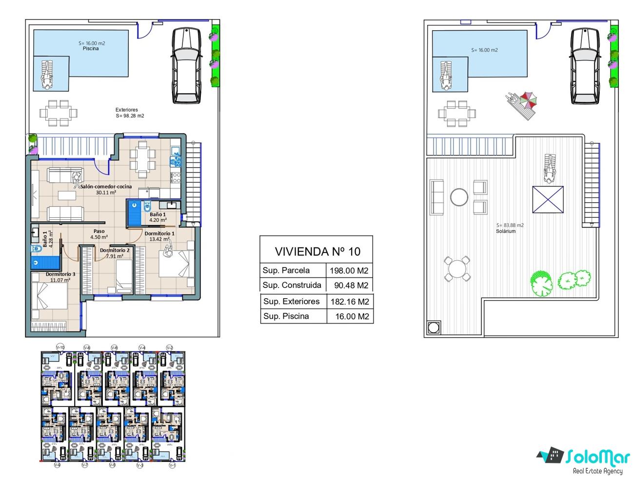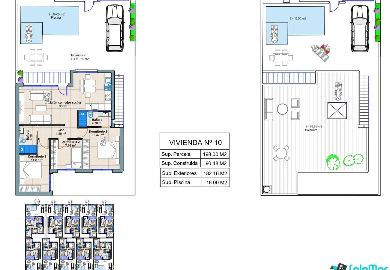 The development is located in Torre Pacheco (Murcia), close to green areas and surrounded by services, parks, sports facilities, and several golf courses.