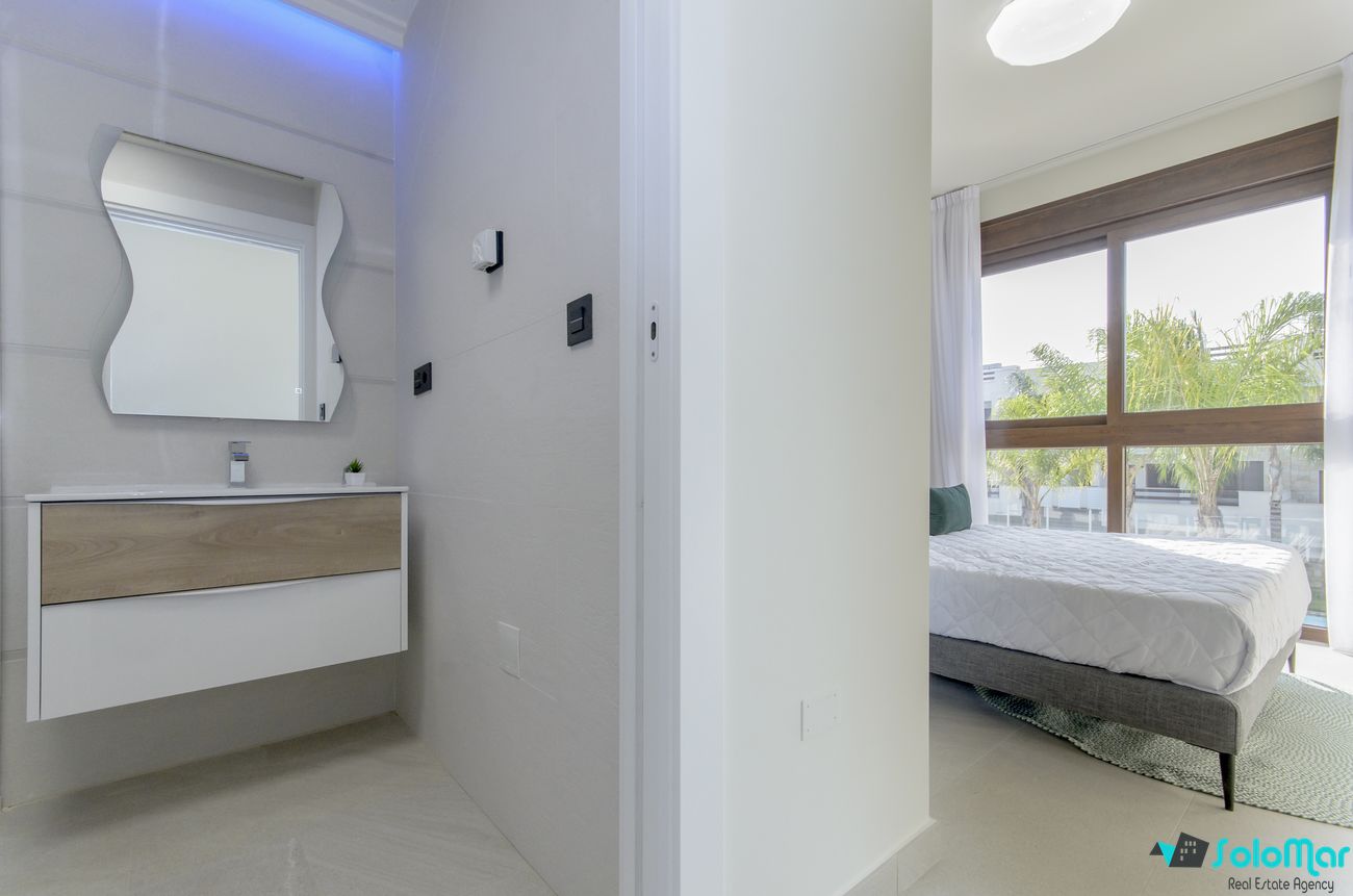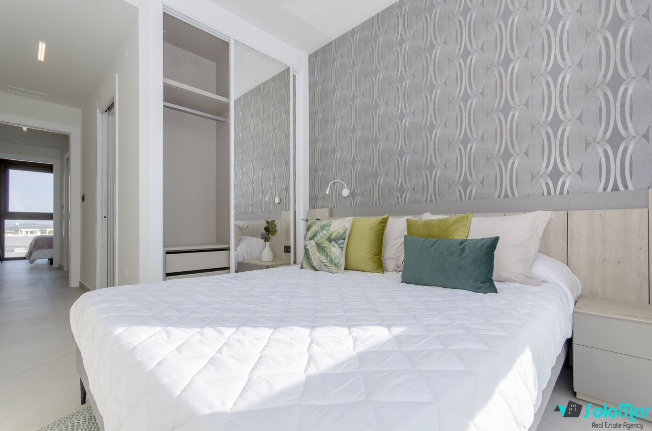 It is a new development of apartments on the ground floor and the top floor. The apartments on the ground floor have their terrace and apartments on the top floor have a private solarium. There are apartments with 2 and 3 bedrooms, 2 bathrooms, kitchen with high and low furniture. Each apartment has pre installation of air conditioning and installation of underfloor heating in the bathrooms. Each bedroom has its built-in wardrobe. The complex has a communal pool.
