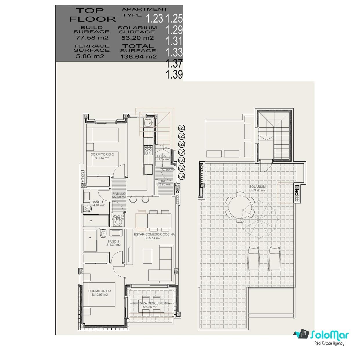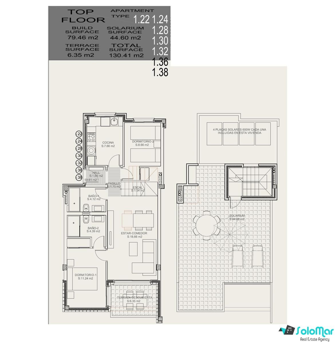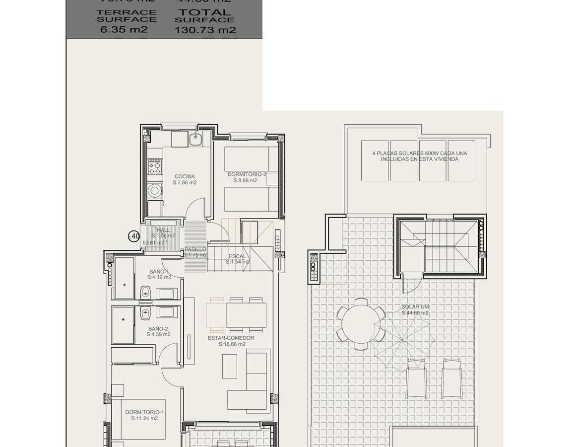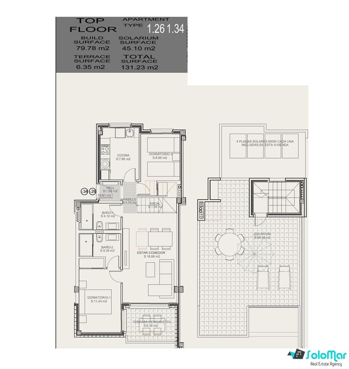 Le complexe est construit sur deux niveaux, avec des options de 2 ou 3 chambres, jardin privatif ou solarium sur le toit. Tous les logements comprennent un garage inclus dans le prix et offrent une vue imprenable.
