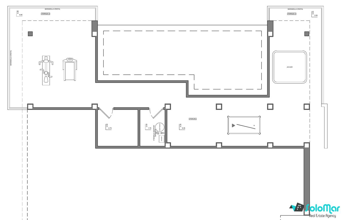 Le sous-sol comprend une salle de sport privée, un espace détente avec jacuzzi et un accès direct à l’extérieur.