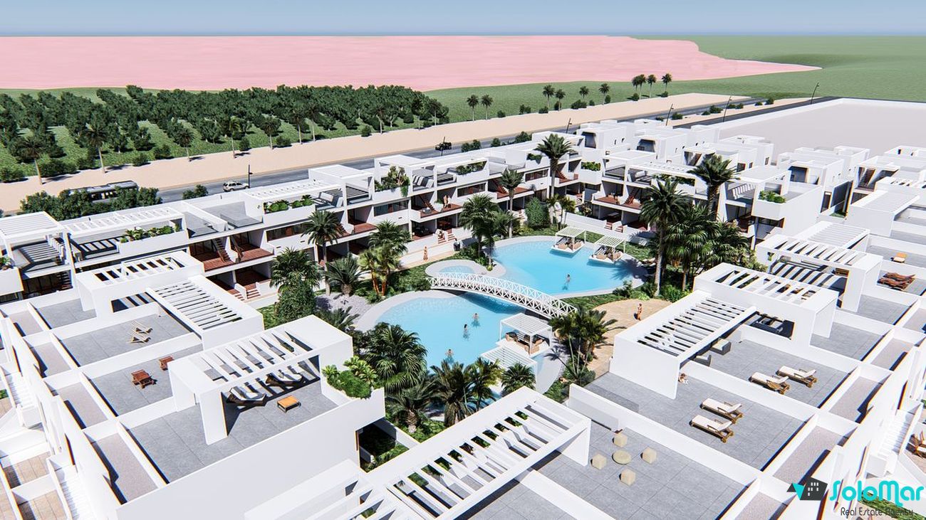 SoloMar est heureux de présenter ce nouveau projet à Los Balcones, Torrevieja. Le complexe dispose de bungalows avec une maison au rez-de-chaussée ou à l'étage supérieur et aussi quelques villas. Ce bungalow situé au dernier étage dispose de deux chambres, deux salles de bain, une terrasse et un solarium. L' interieur est de style moderne, avec une cuisine ouverte. Il y a déjà une pré-installation de la climatisation, ainsi qu'une porte d'entrée automatisée au garage où chaque résident se voit attribuer une place de parking. Le jardin commun dispose d'une grande piscine où il est certainement agréable de séjourner.