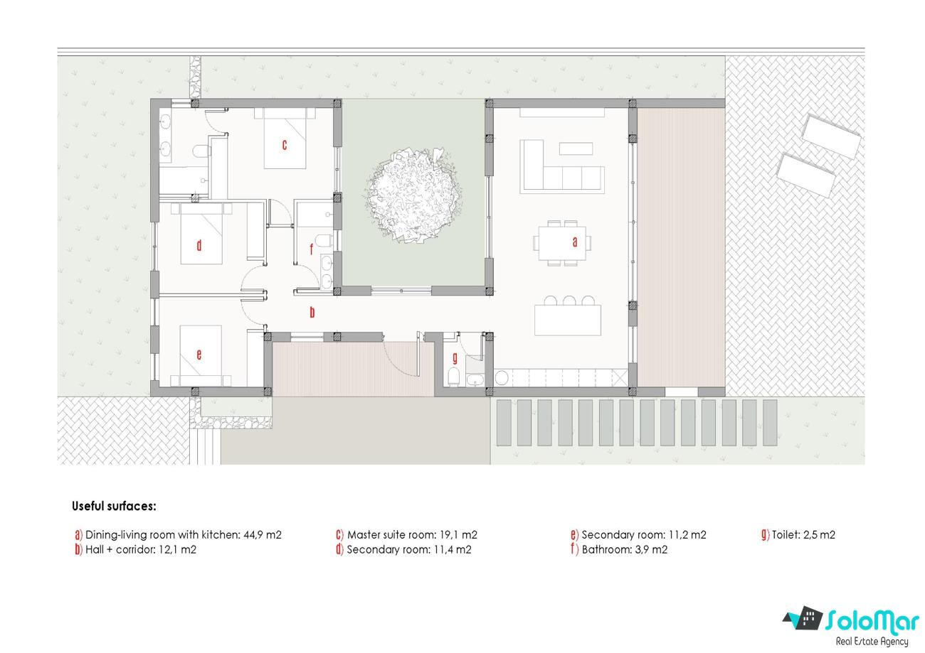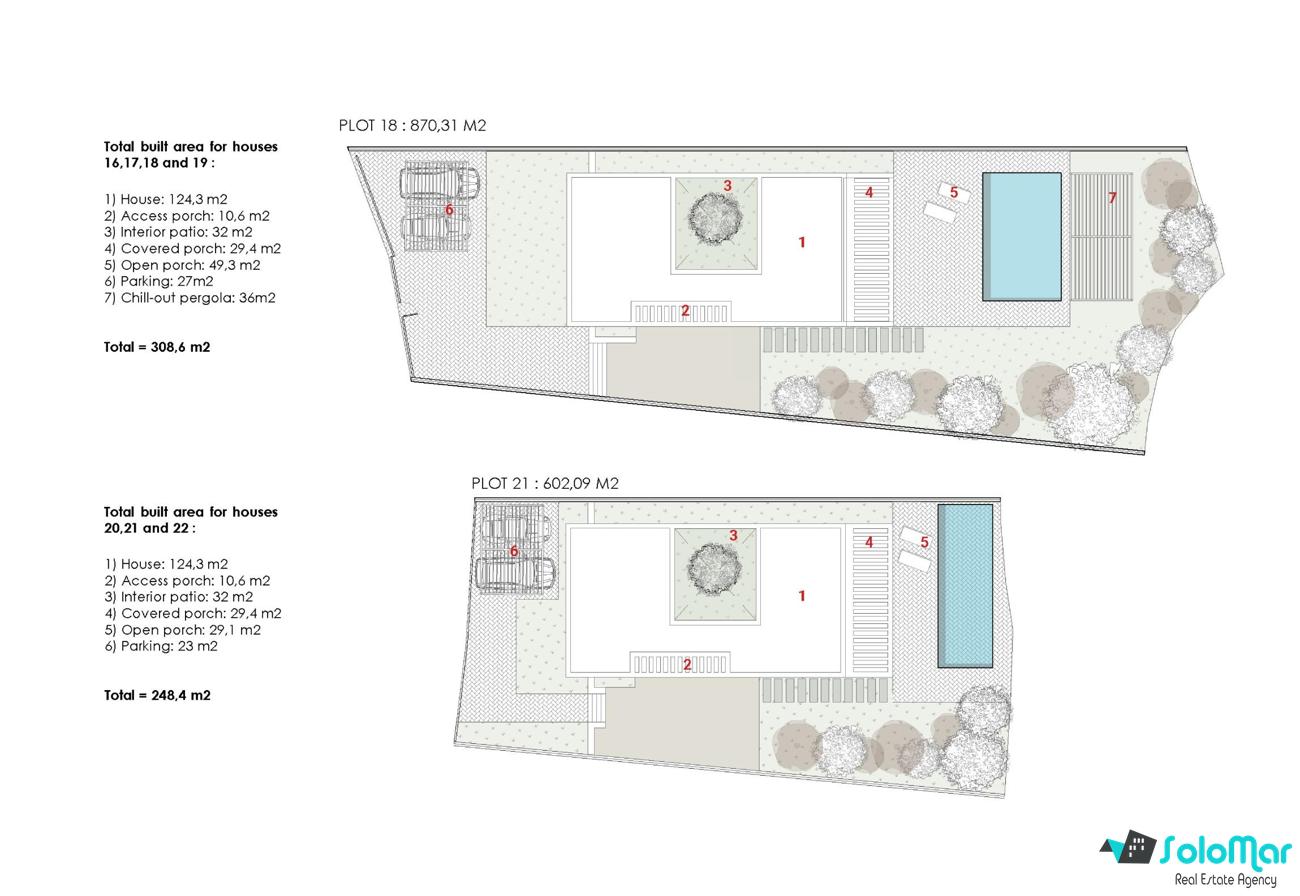 Kiekvienoje viloje yra trys miegamieji ir trys vonios kambariai, taip pat atvira gyvenamoji erdvė, apimanti svetainę, valgomojo zoną ir virtuvę. Privačiuose sklypuose galima įrengti sodą, baseiną ir soliariumą – tai puikus pasirinkimas tiems, kurie ieško šiuolaikiško, prieinamo ir išskirtinio būsto.