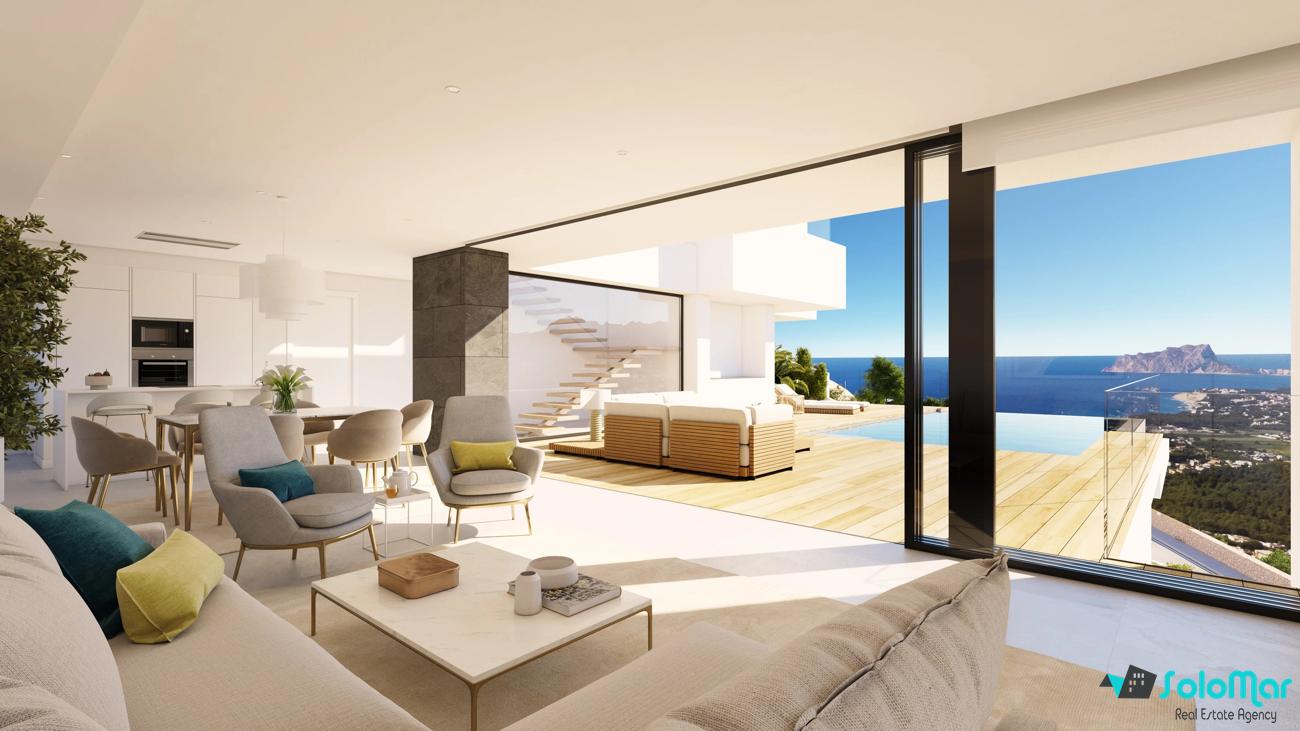 Modernios architektūros vila, įsikūrusi išskirtiniame gyvenamajame rajone Cumbre del Sol, iš kurios atsiveria atviri vaizdai į jūrą ir Peñón de Ifach uolą.