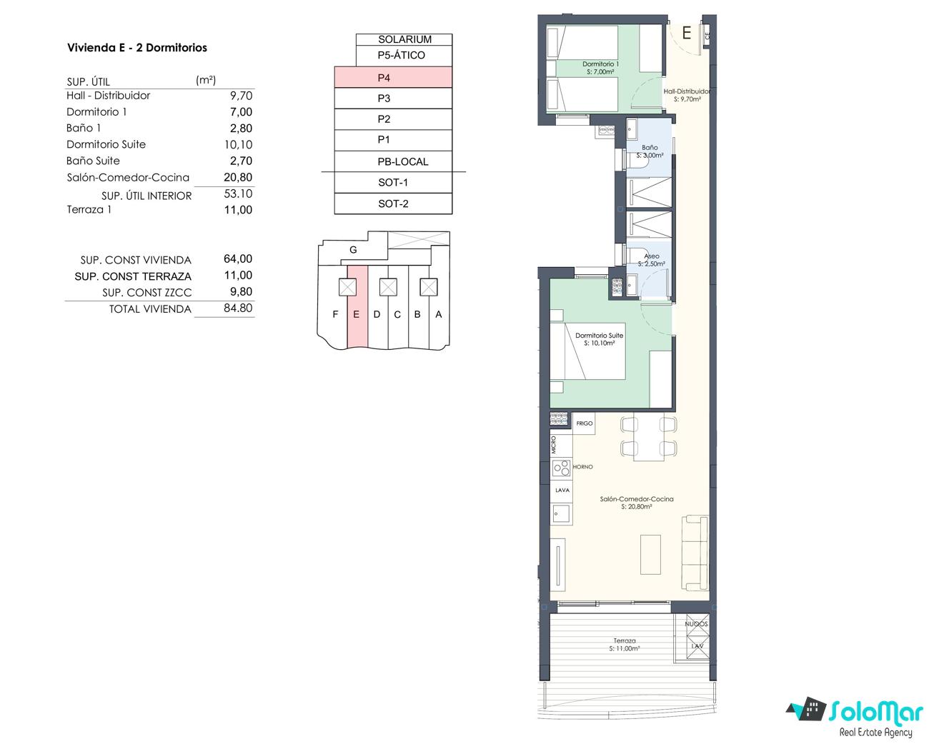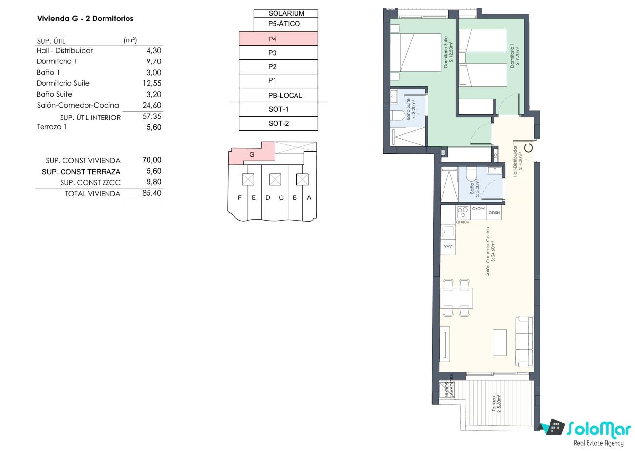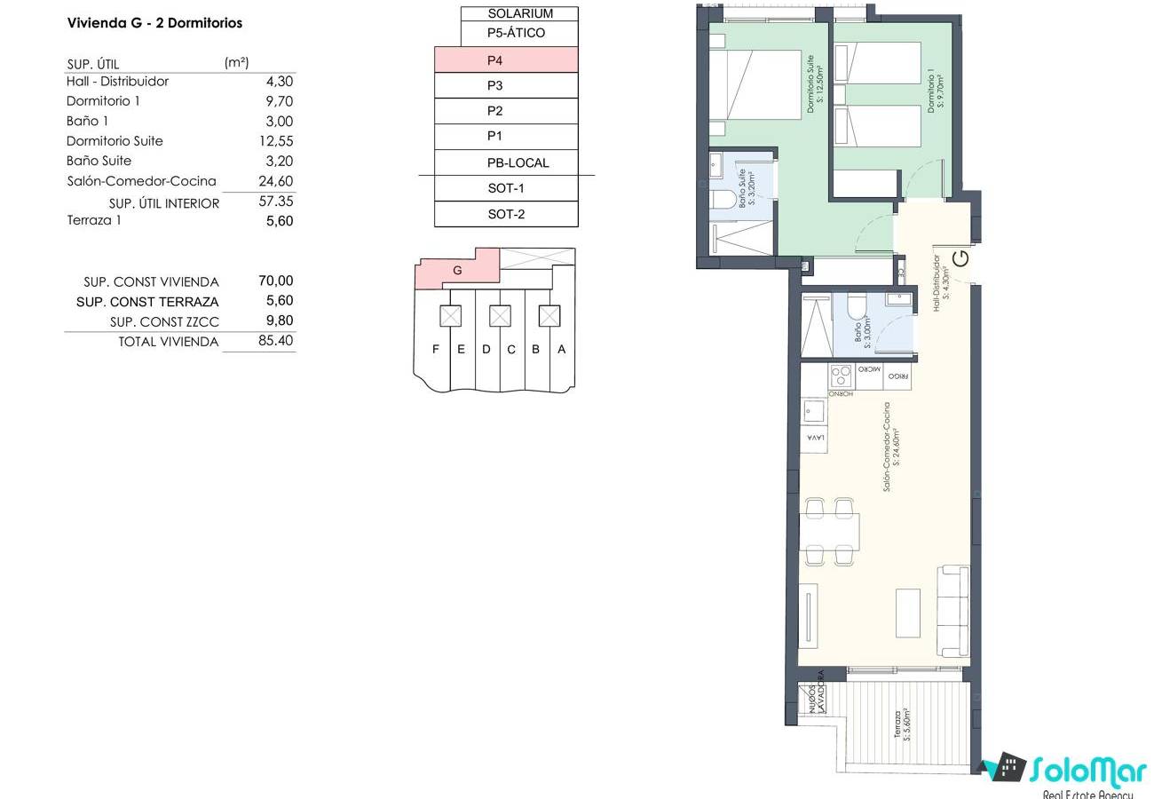 De appartementen worden opgeleverd met ingerichte keuken en badkamers, pre-installatie van airconditioning en inbouwkasten in alle kamers.