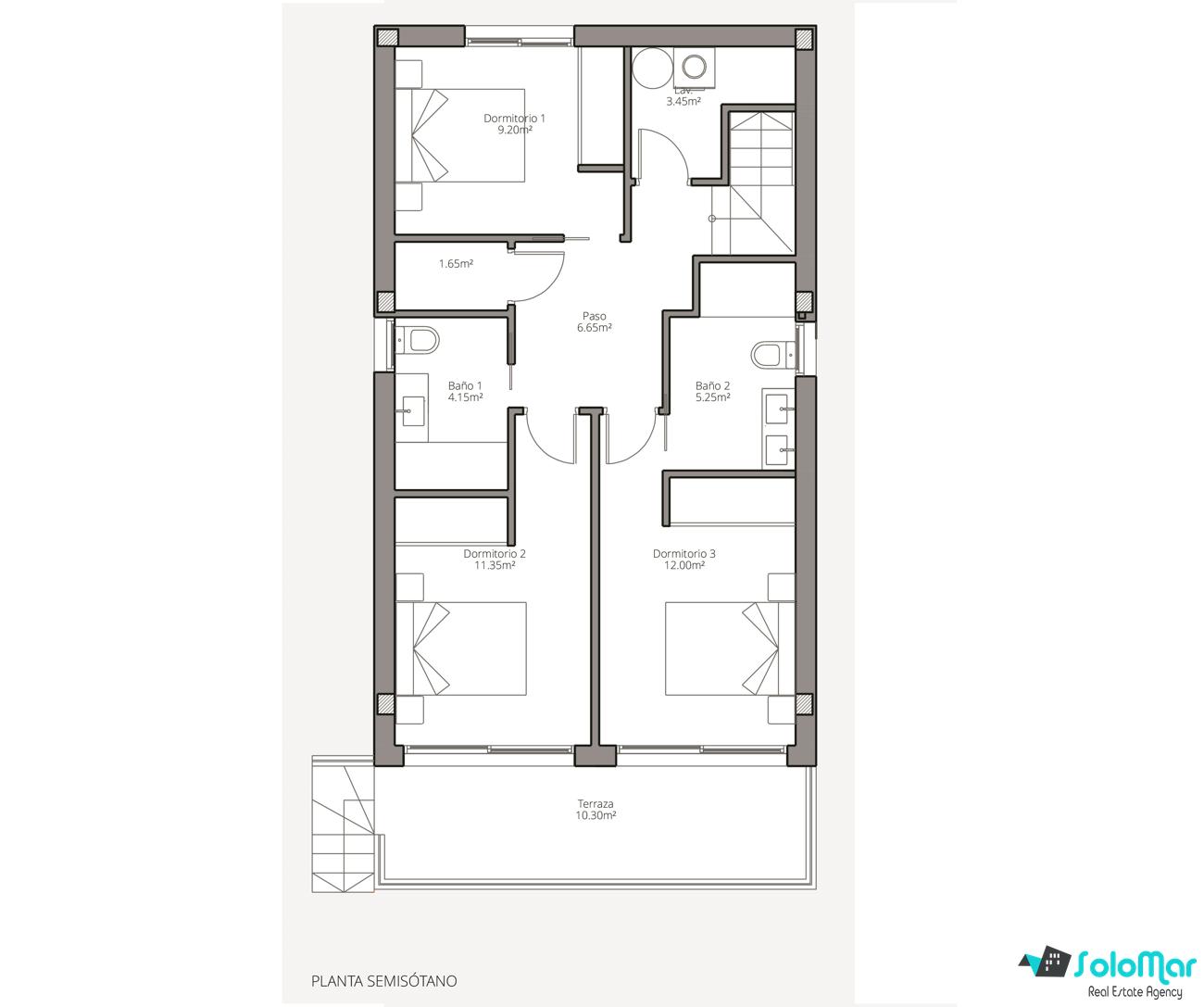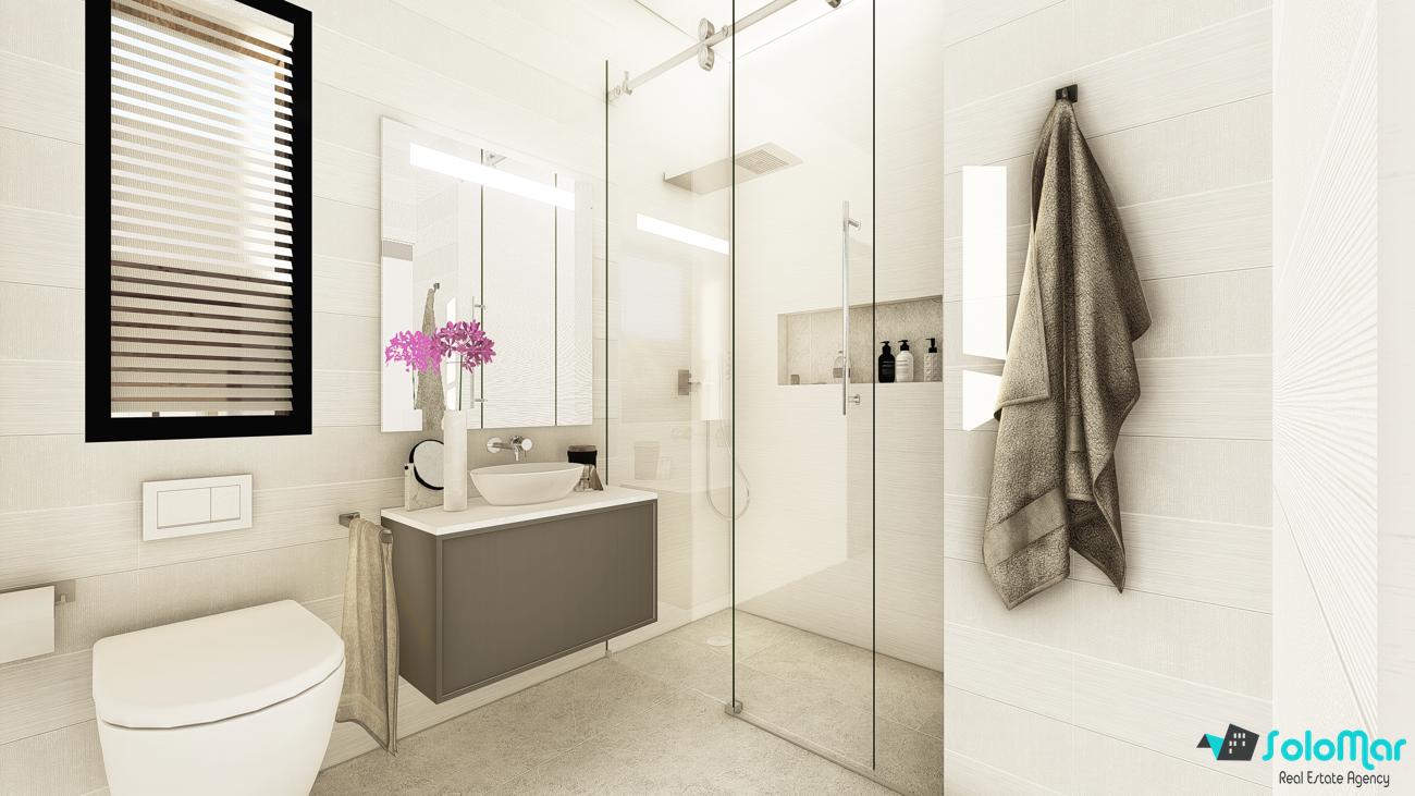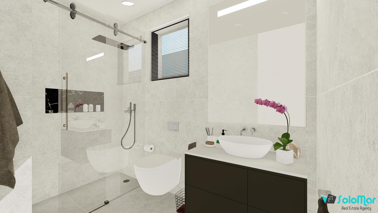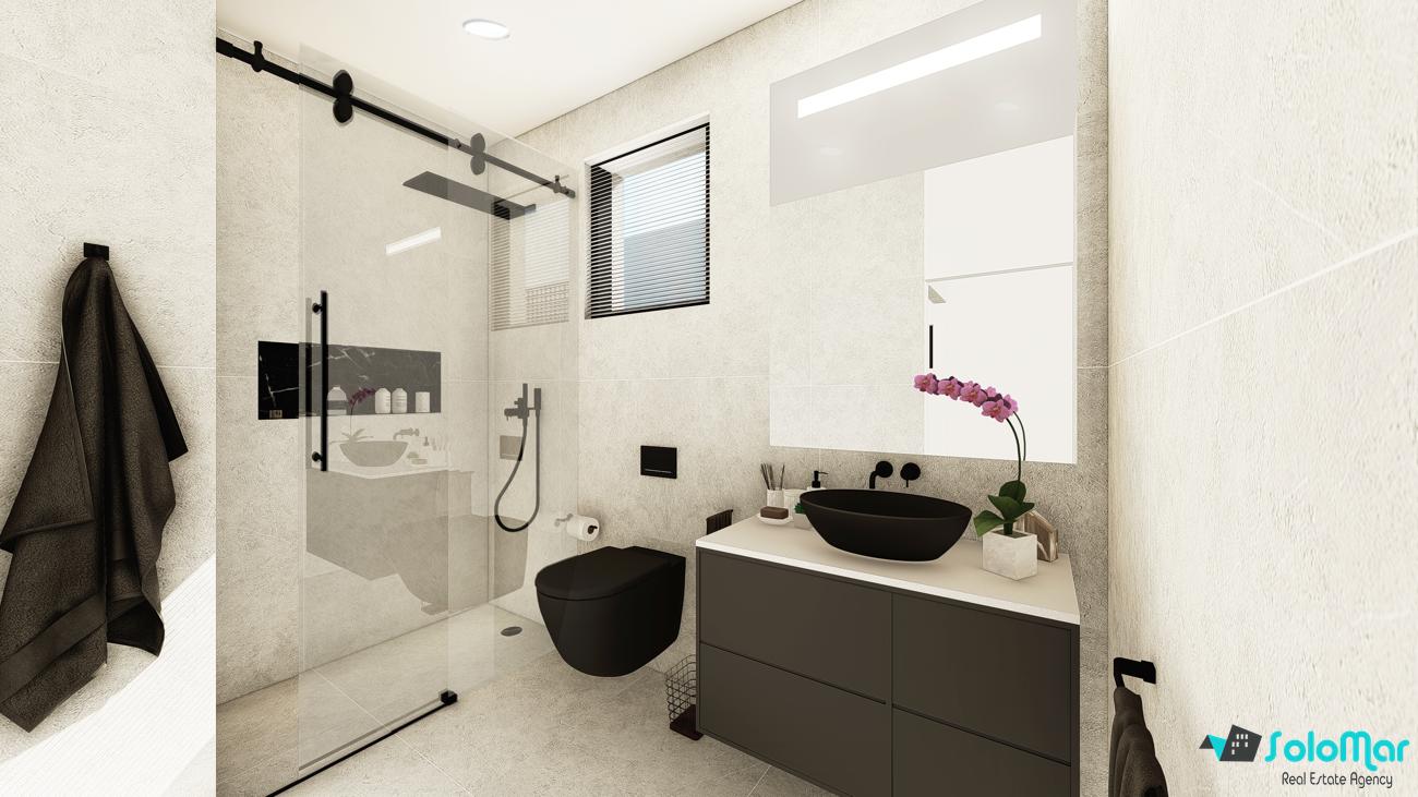 De villa's hebben 3 badkamers, één op de begane grond en twee op de benedenverdieping, waarvan één directe toegang heeft vanuit een van de slaapkamers.