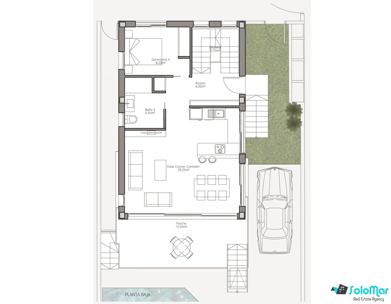 Het Quirón-ziekenhuis ligt op slechts 2,5 km afstand en de winkelcentra Habaneras en Carrefour bevinden zich op 4,5 km. Het gebied ligt ook dicht bij verschillende golfbanen en heeft goede busverbindingen naar Torrevieja en Alicante.