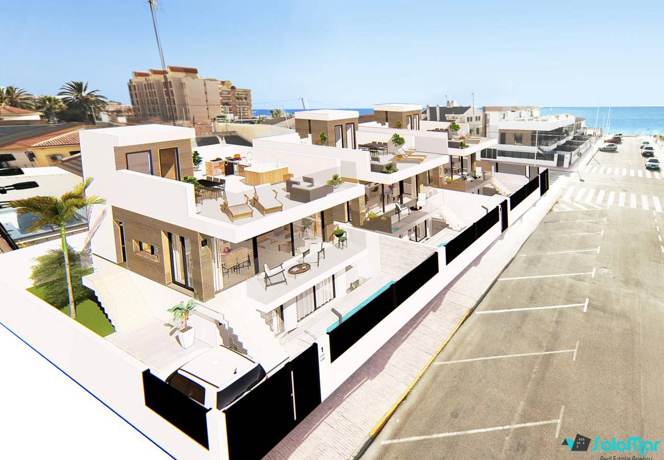 Moderne villa's te koop, gelegen op slechts 70 meter van het strand, aan de tweede lijn van de zee. De woningen beslaan twee volledige verdiepingen en beschikken ook over een indrukwekkend dakterras met prachtig uitzicht op de zee.