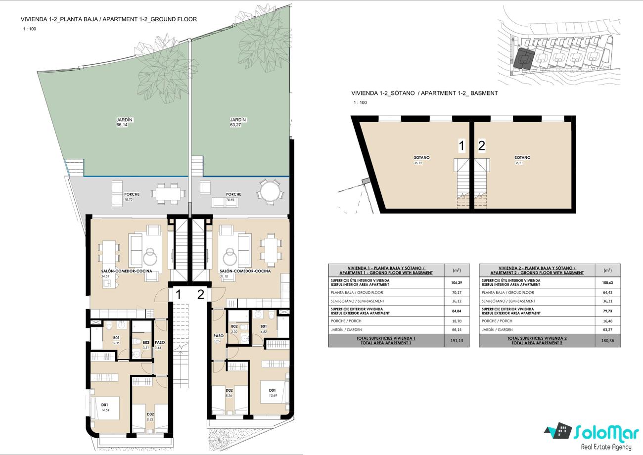 De gelijkvloerse appartementen beschikken over een ruime privé-tuin met uitzicht op zee en de mogelijkheid om een zwembad toe te voegen, evenals een veelzijdige souterrain die ideaal is voor extra slaapkamers, een fitnessruimte of een ontspanningsruimte. De appartementen op de bovenverdieping bieden een spectaculair panoramisch uitzicht, ruime terrassen en een privé-solarium – perfect om te ontspannen of gasten te ontvangen.