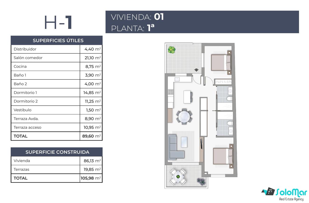 Wooncomplex op een toplocatie, op slechts 300 meter van de beste stranden en omgeven door alle voorzieningen: restaurants, supermarkten, cafés en een cultureel centrum.