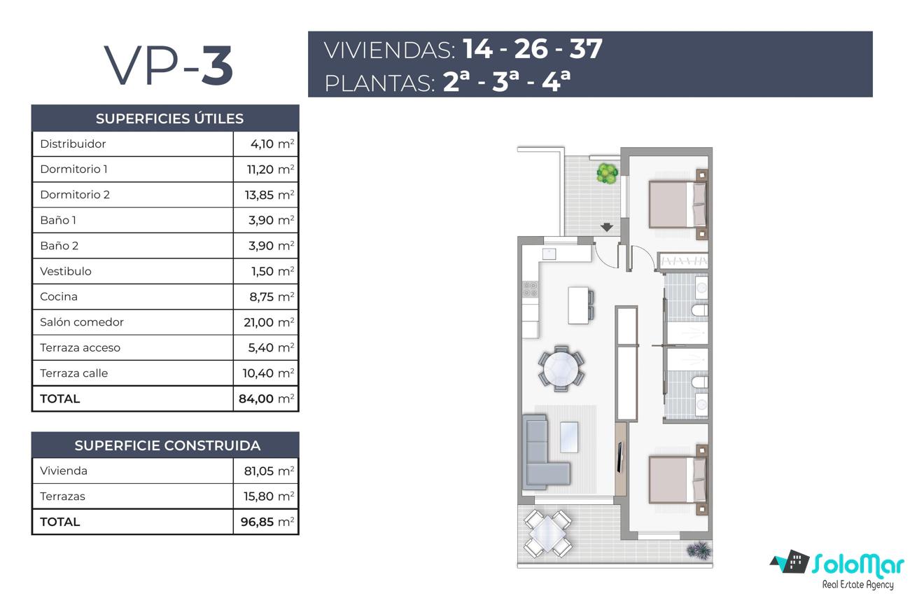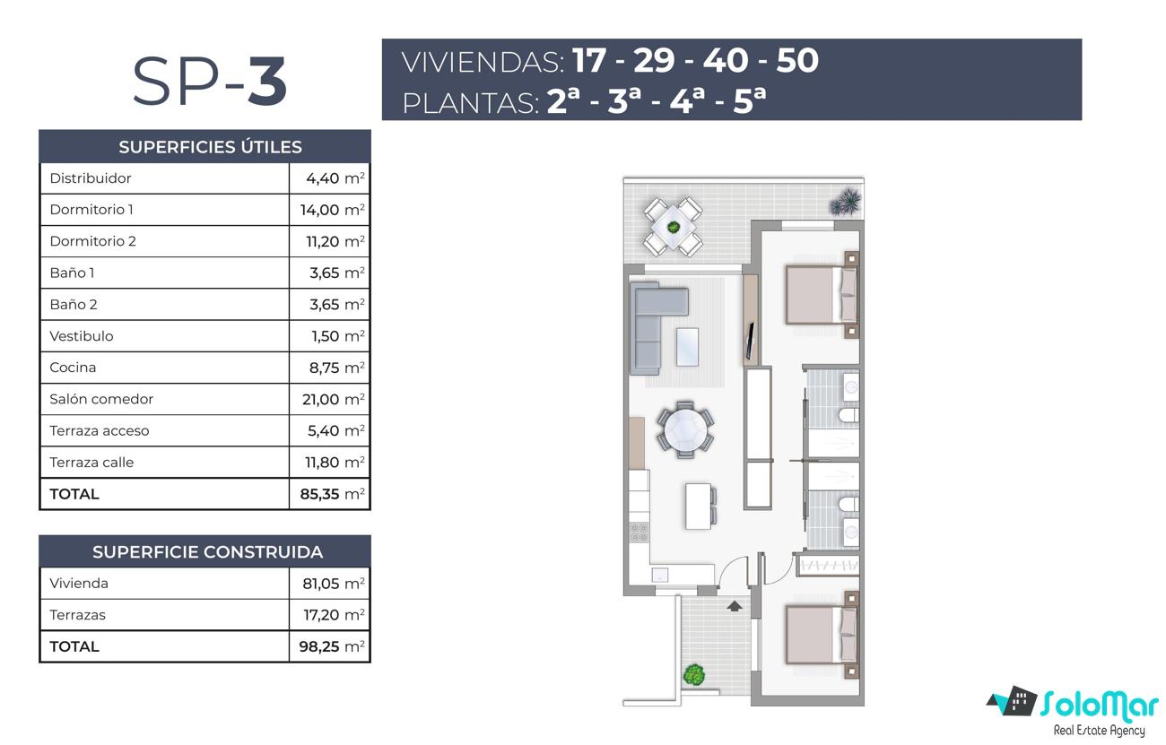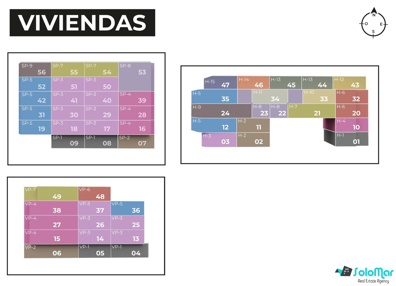 Woningen met 1, 2 en 3 slaapkamers met zeezicht, aerothermische verwarming, voorgeïnstalleerde airconditioning en volledig uitgeruste gemeenschappelijke ruimtes: een uitkijkpunt, een multifunctionele ruimte, een berging en een gemeenschappelijk toilet.