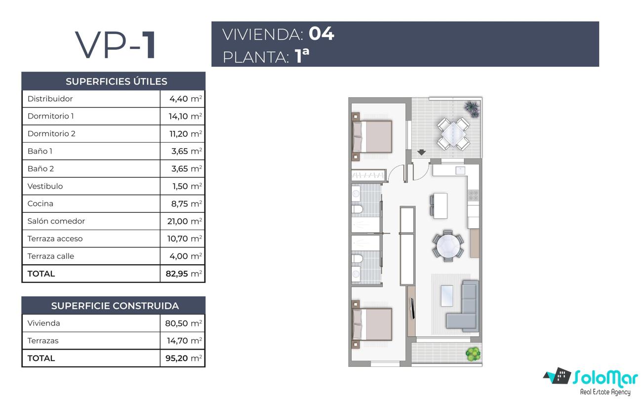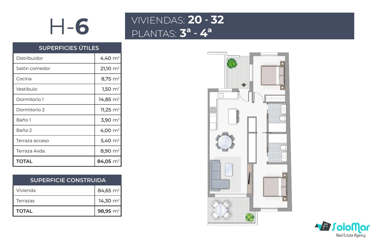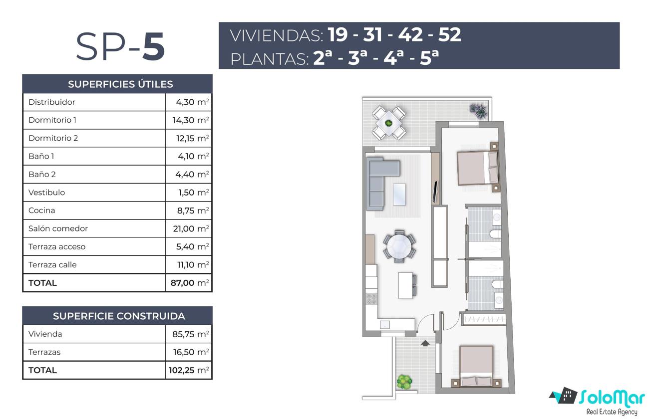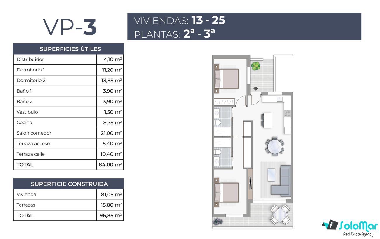 Woningen met 1, 2 en 3 slaapkamers met zeezicht, aerothermische verwarming, voorgeïnstalleerde airconditioning en volledig uitgeruste gemeenschappelijke ruimtes: een uitkijkpunt, een multifunctionele ruimte, een berging en een gemeenschappelijk toilet.