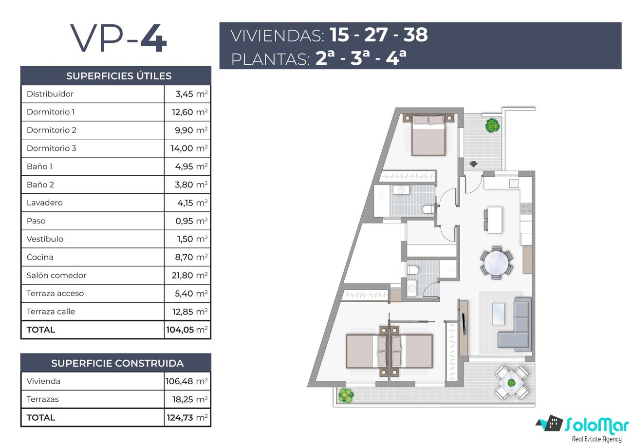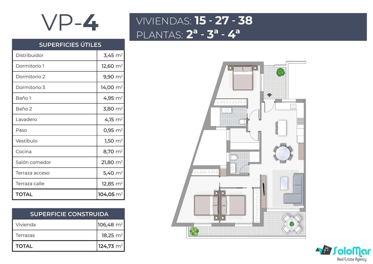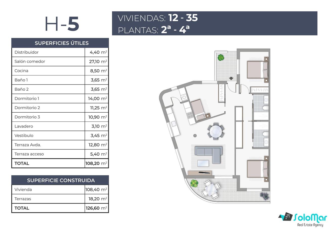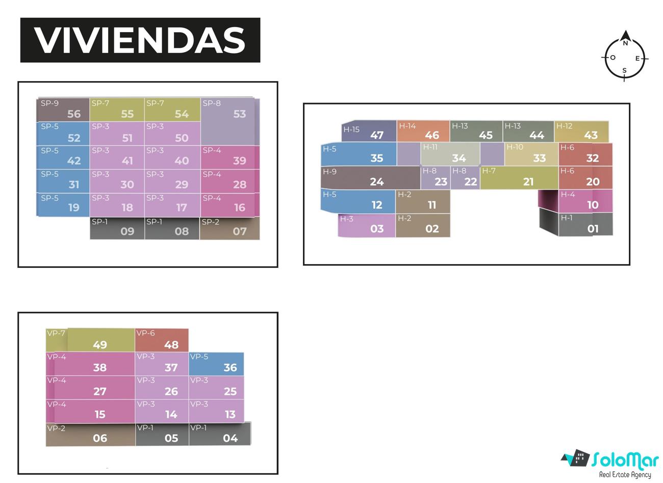 Woningen met 1, 2 en 3 slaapkamers met zeezicht, aerothermische verwarming, voorgeïnstalleerde airconditioning en volledig uitgeruste gemeenschappelijke ruimtes: een uitkijkpunt, een multifunctionele ruimte, een berging en een gemeenschappelijk toilet.