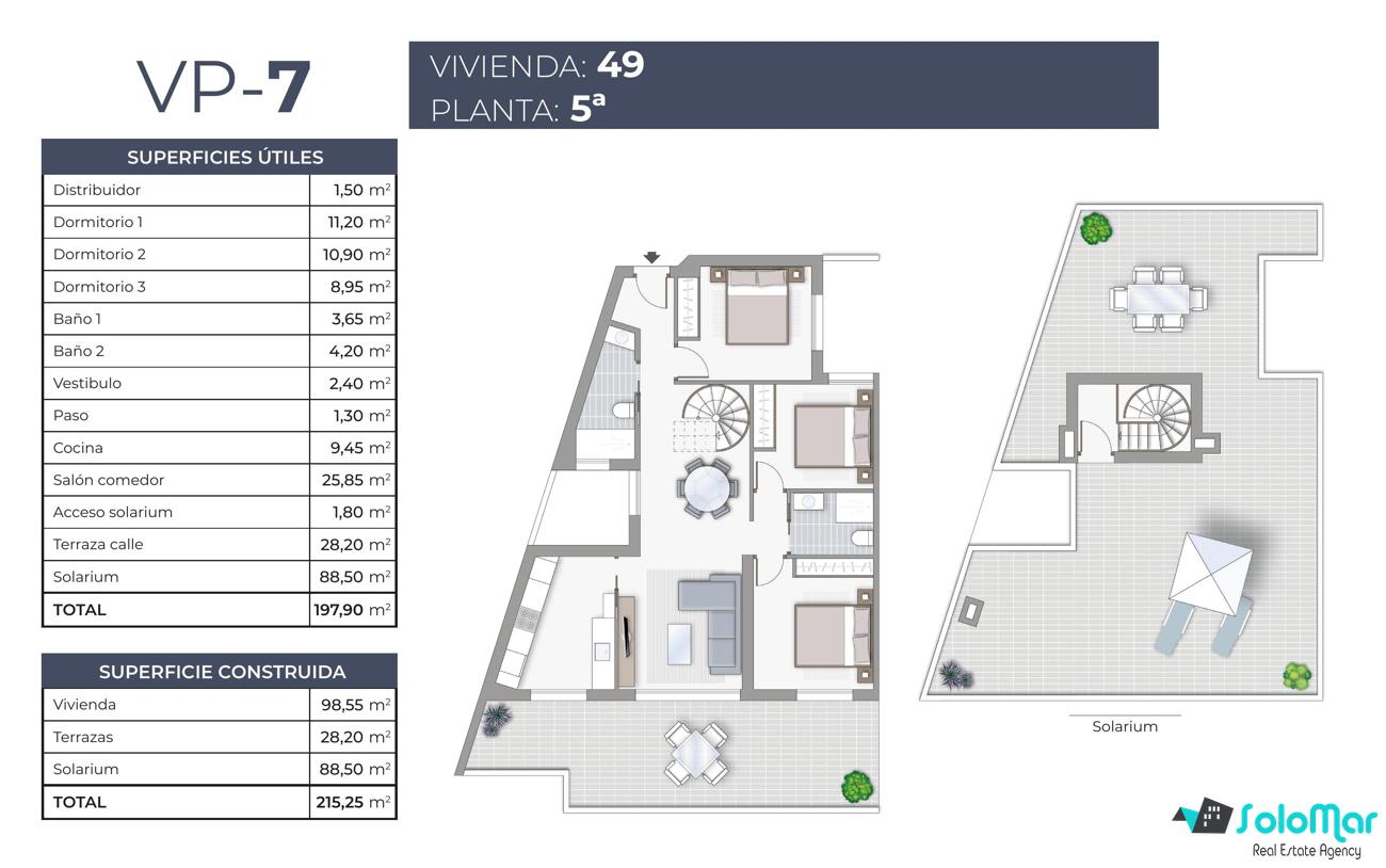 Penthouse met 3 slaapkamers en solarium Torrevieja - Alicante (Costa Blanca)