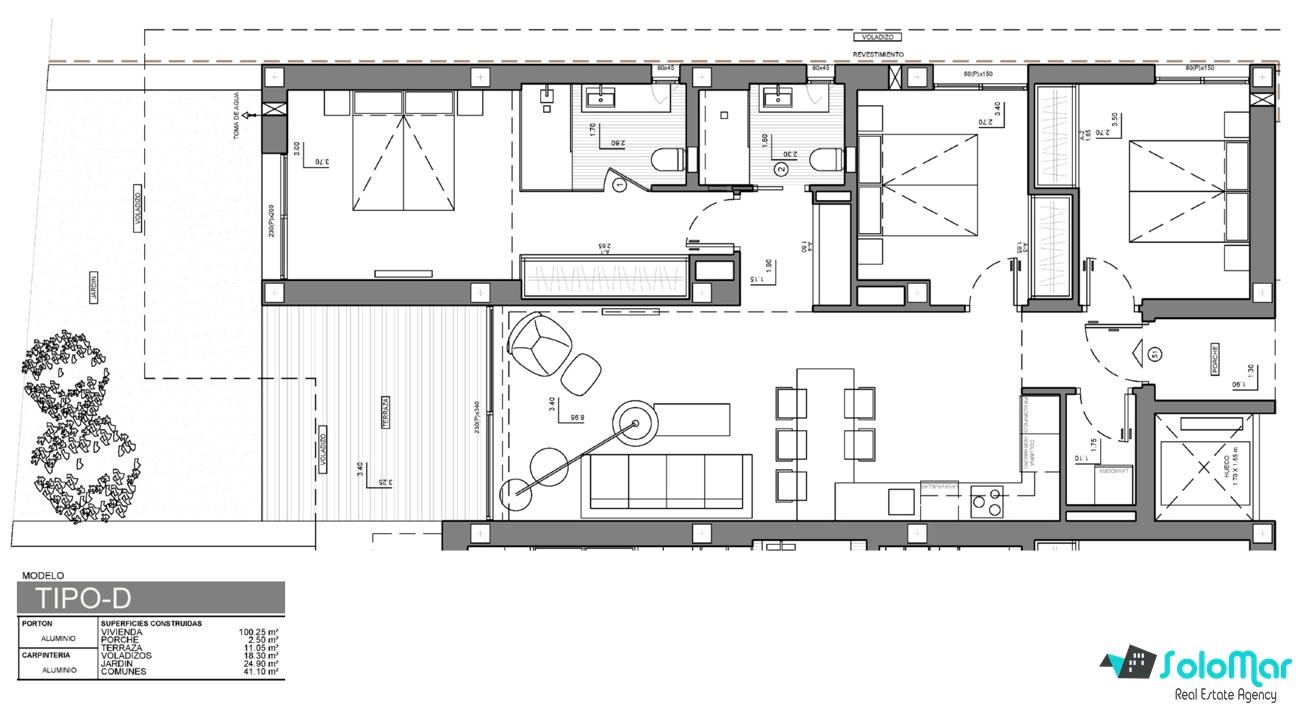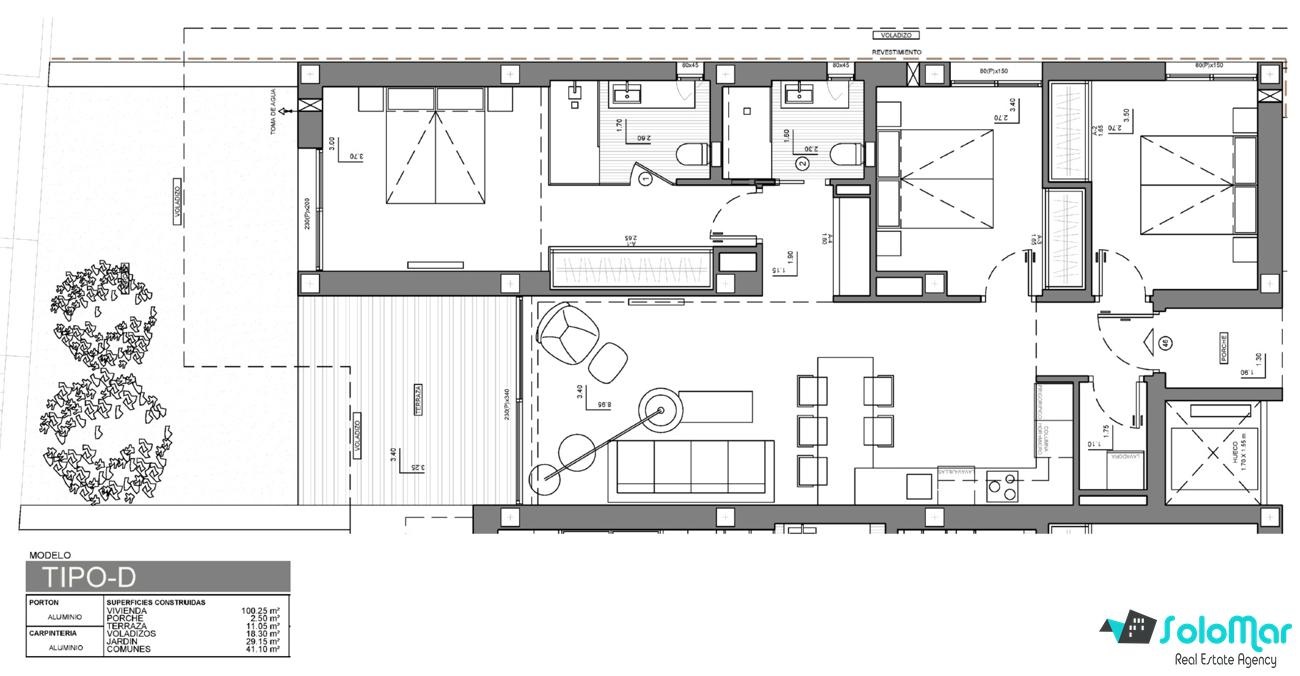 Modernos apartamentos con 3 dormitorios y 2 baños, cocina abierta. Las viviendas en planta baja cuentan con jardín privado y una bonita terraza.