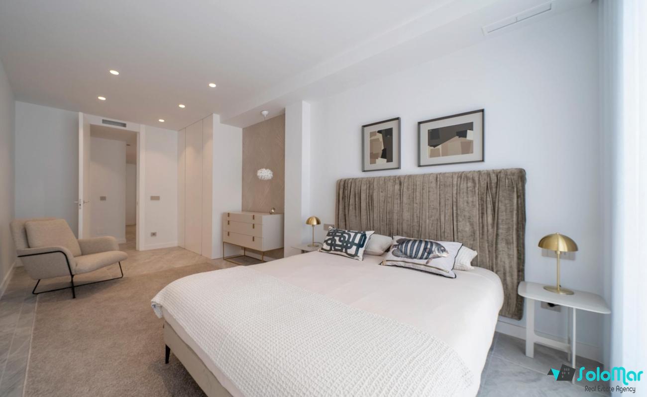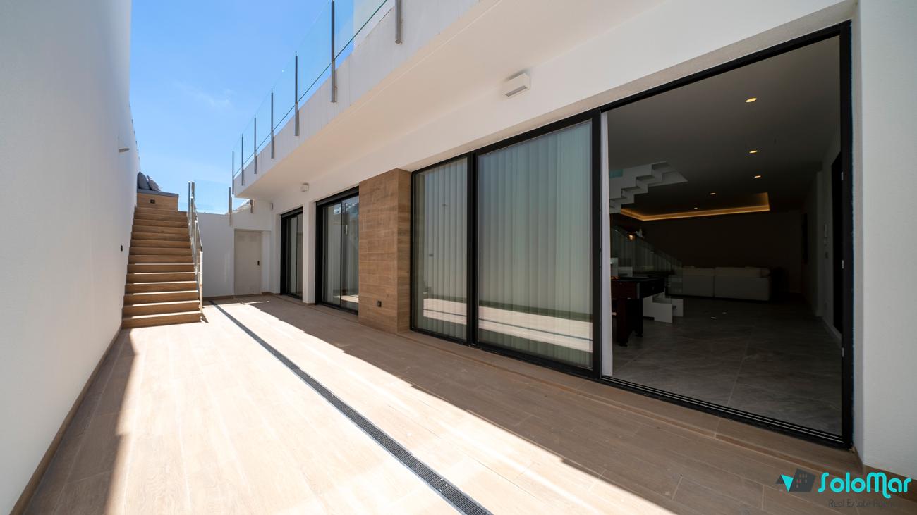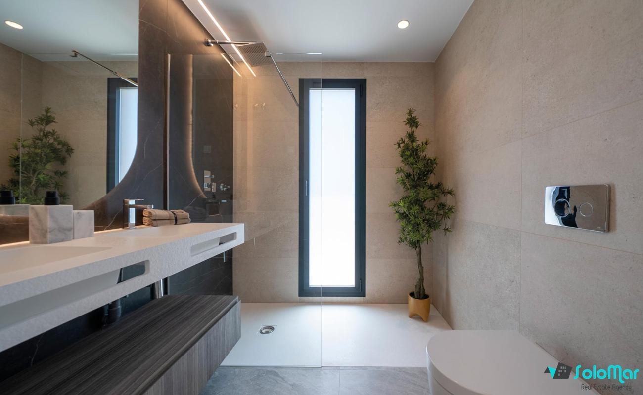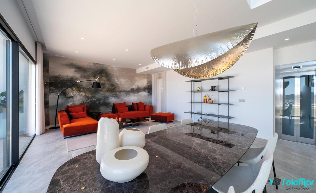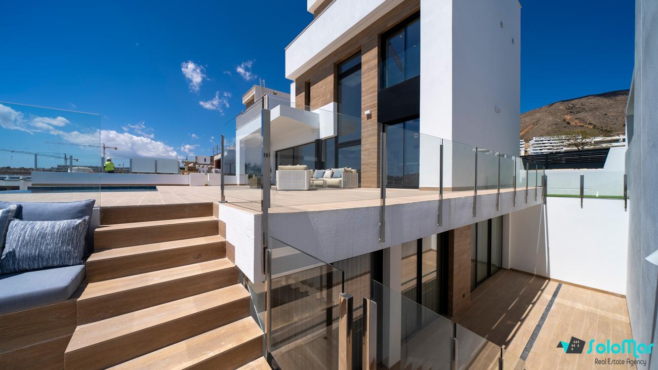 Villa de lujo de 4 dormitorios y 5 baños. Tiene vistas panorámicas al mar desde cualquier lugar de su fachada frontal.