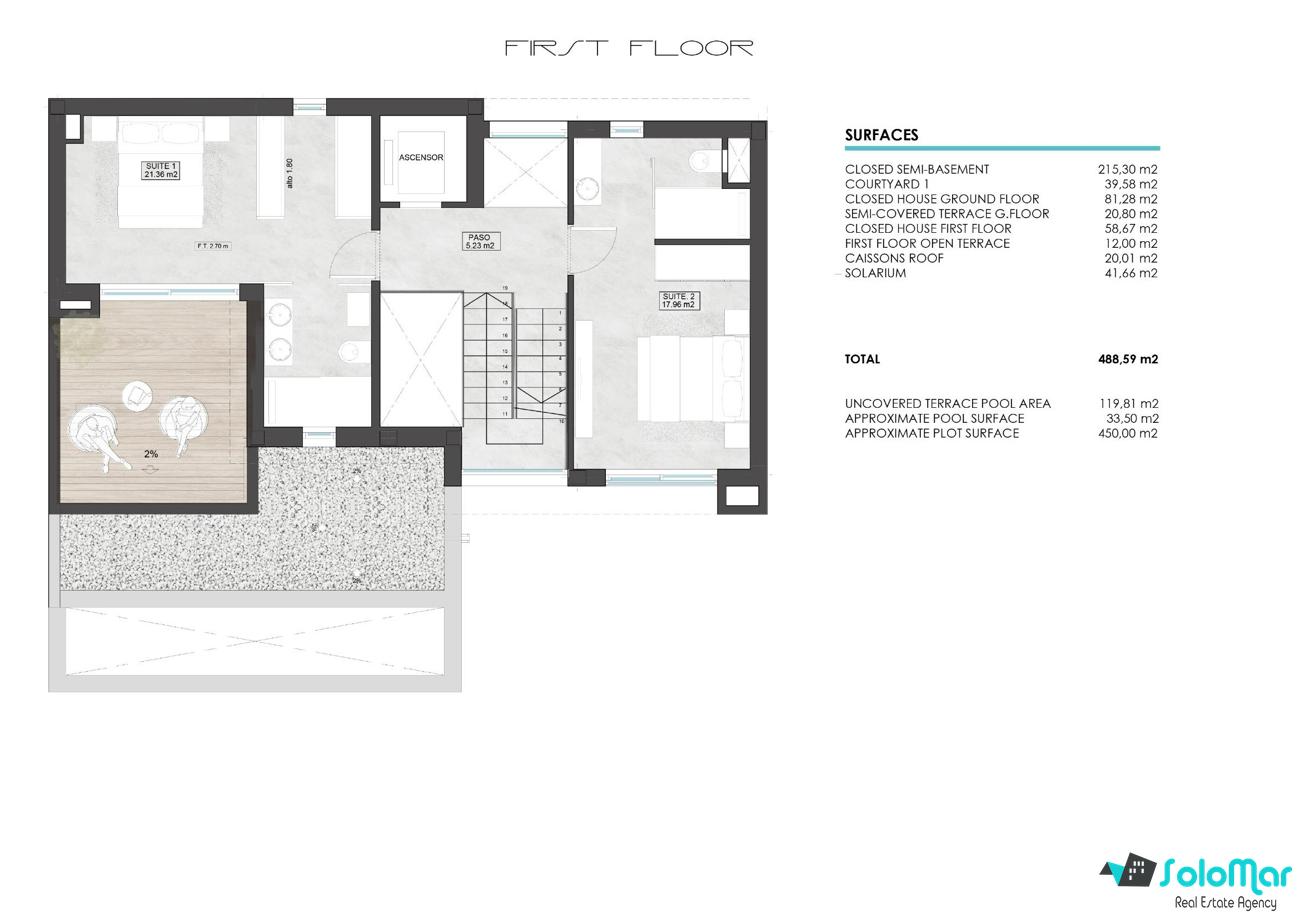 Estas excepcional por su diseño y comodidades: amplio salón, amplios dormitorios en suite en el primer piso y solárium.