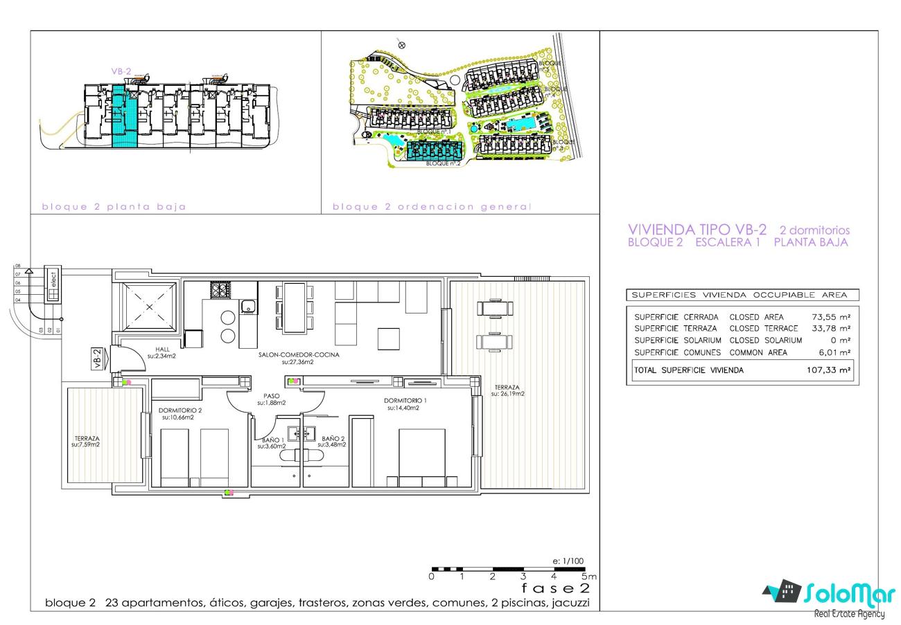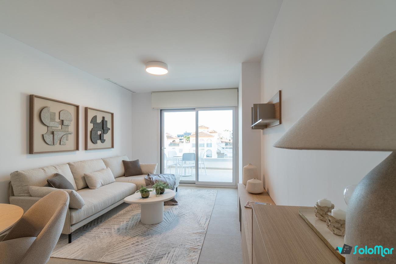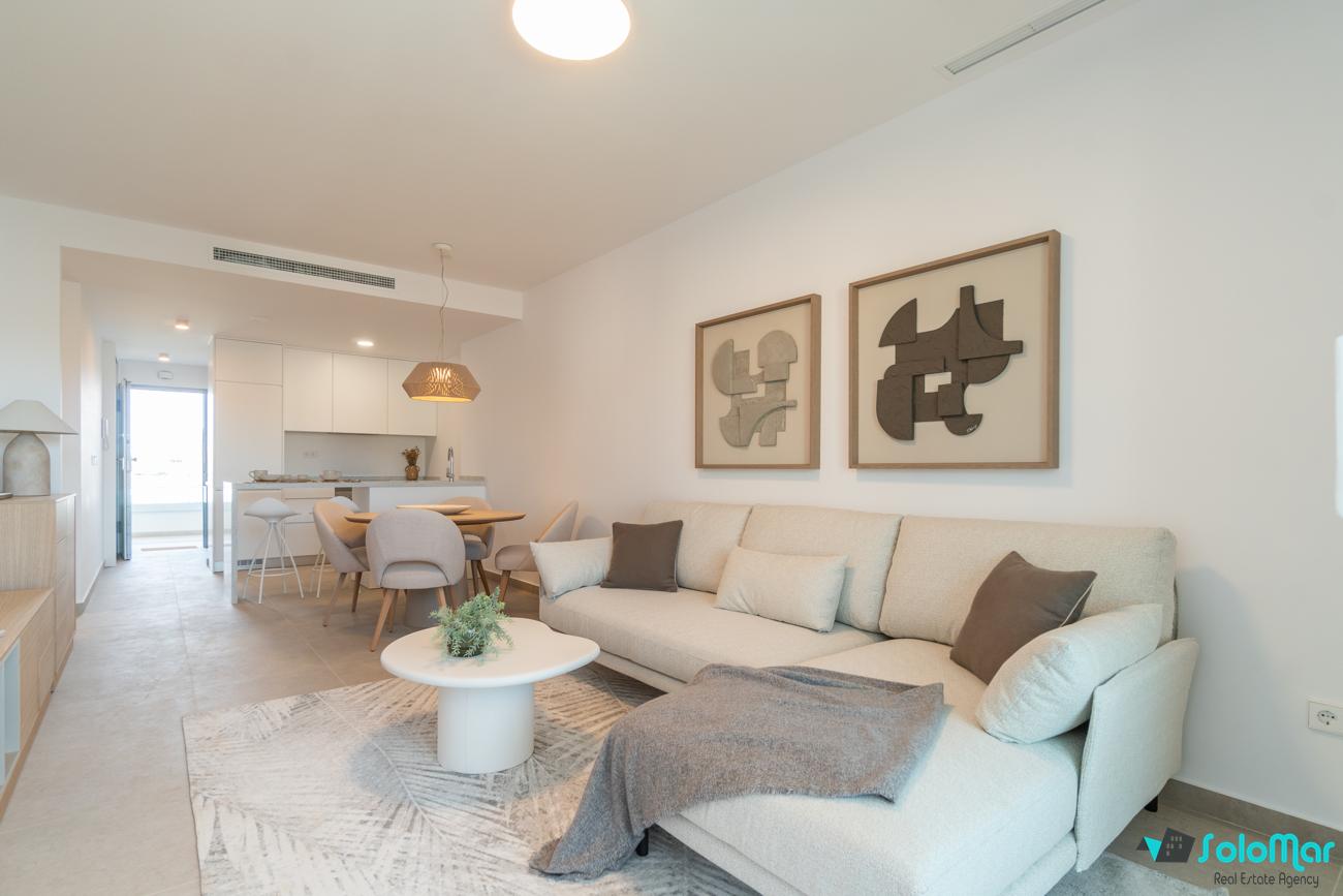 Apartamentos modernos y luminosos en planta baja que constan de 2 dormitorios y 2 baños, salón, cocina y lavadero.