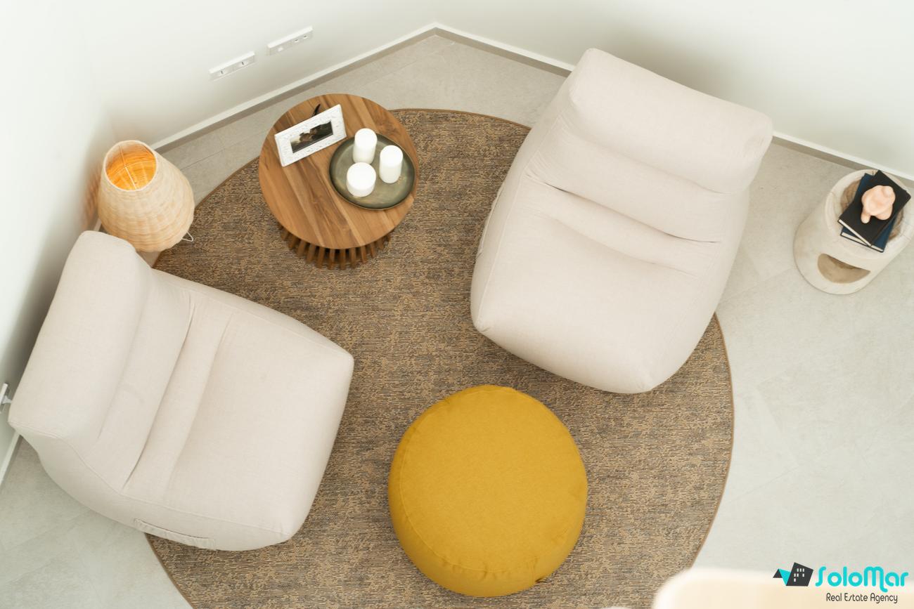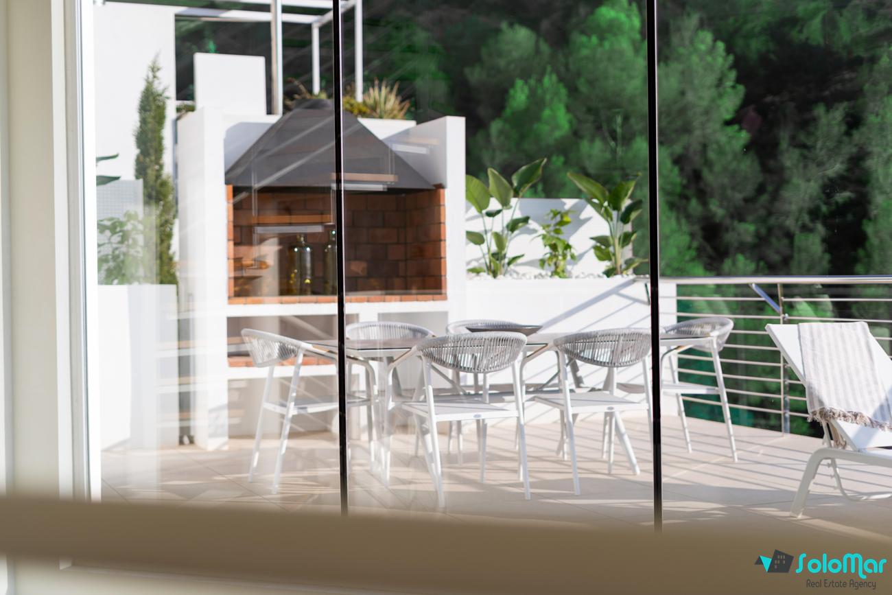 Esta villa destaca por su luminosidad, el diseño de sus espacios y sus generosas dimensiones. Cuenta con cuatro dormitorios, cuatro baños completos y un aseo de cortesía. La cocina abierta conecta con el salón-comedor, creando un ambiente amplio y acogedor. Desde la gran terraza se disfruta de vistas despejadas y acceso directo a la piscina privada y zona de barbacoa, ideal para el ocio al aire libre.