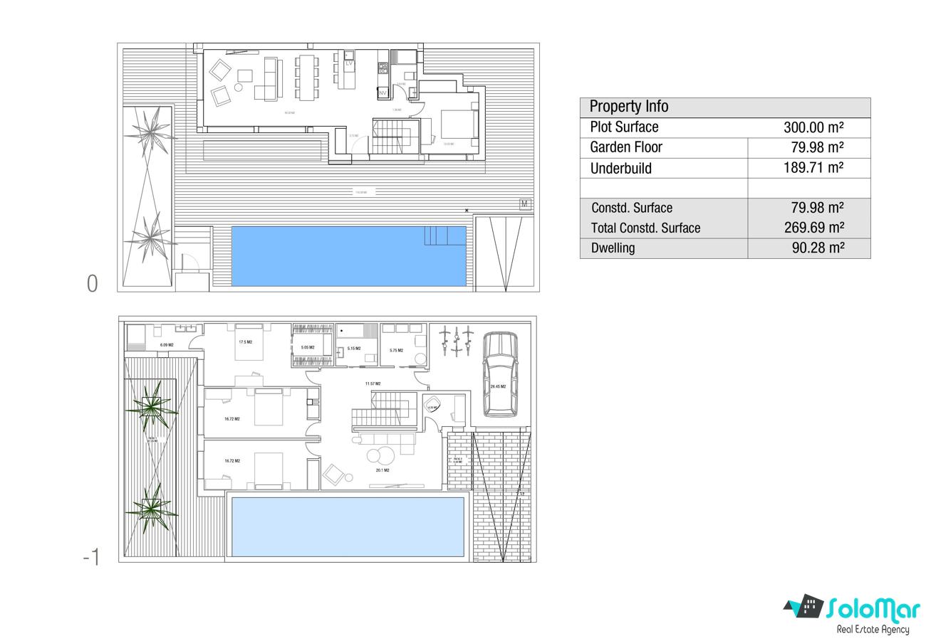 Se vende elegante villa de 265 m² y 4 dormitorios, situada en una parcela de 300 m² con piscina privada y orientación ideal, con vistas a las montañas.
