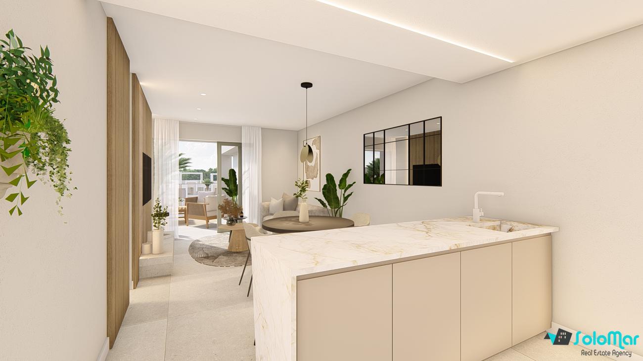 Las zonas comunes incluyen amplios jardines, una piscina para adultos y niños, y áreas para relajarse y socializar. Las viviendas de la planta baja tienen jardines privados, mientras que las plantas superiores disponen de solariums con vistas despejadas. Todo ha sido diseñado para disfrutar del clima mediterráneo durante todo el año.