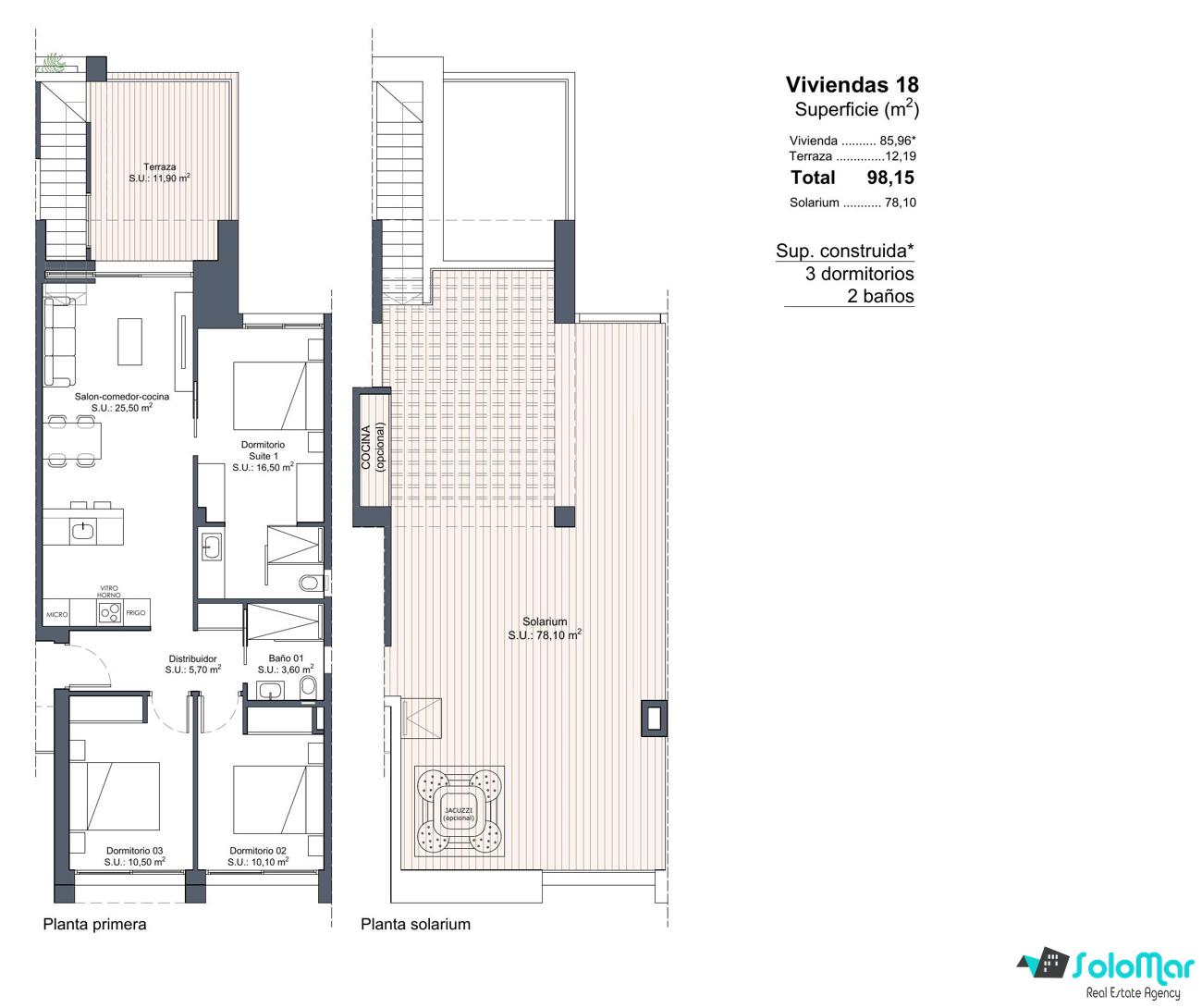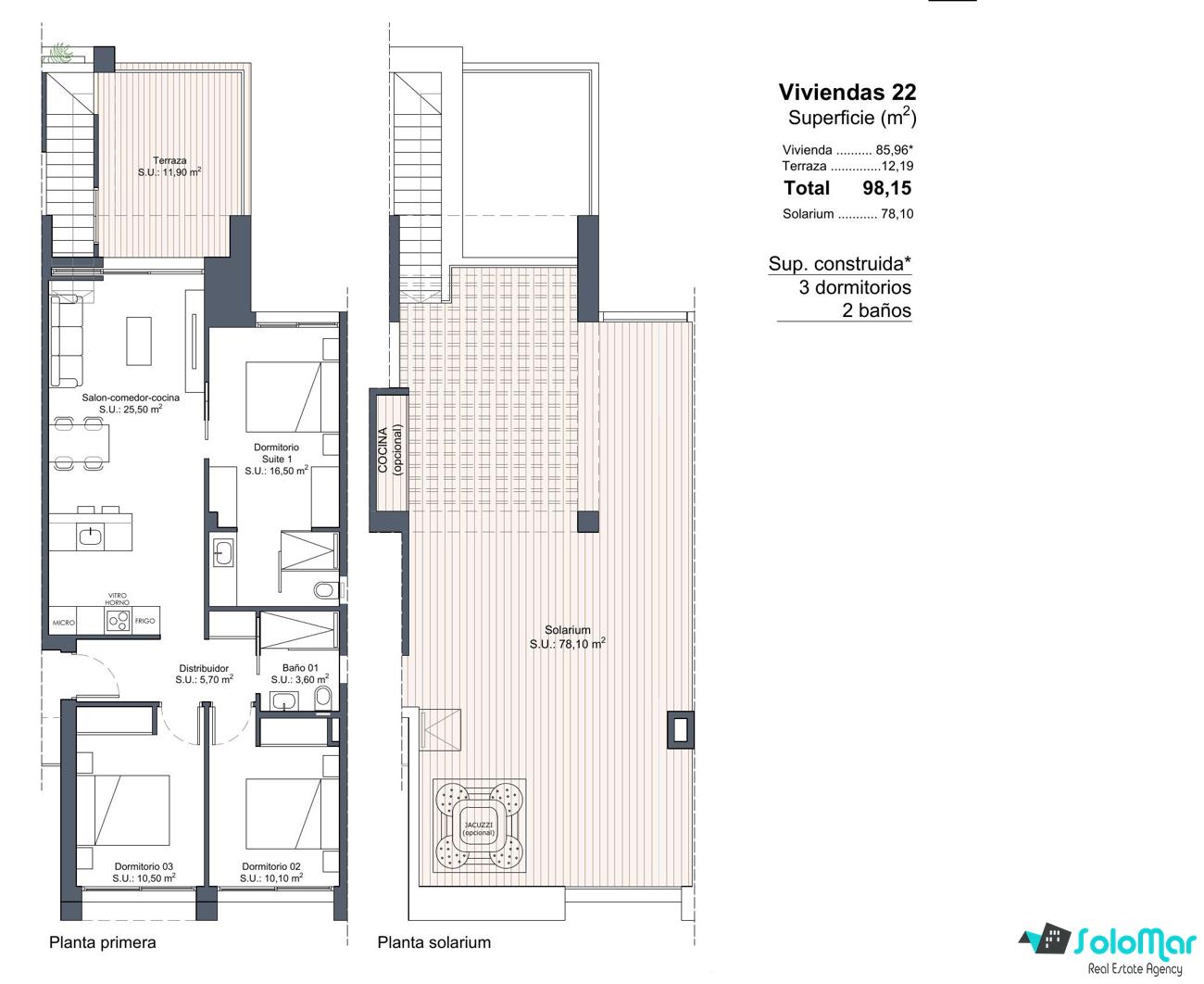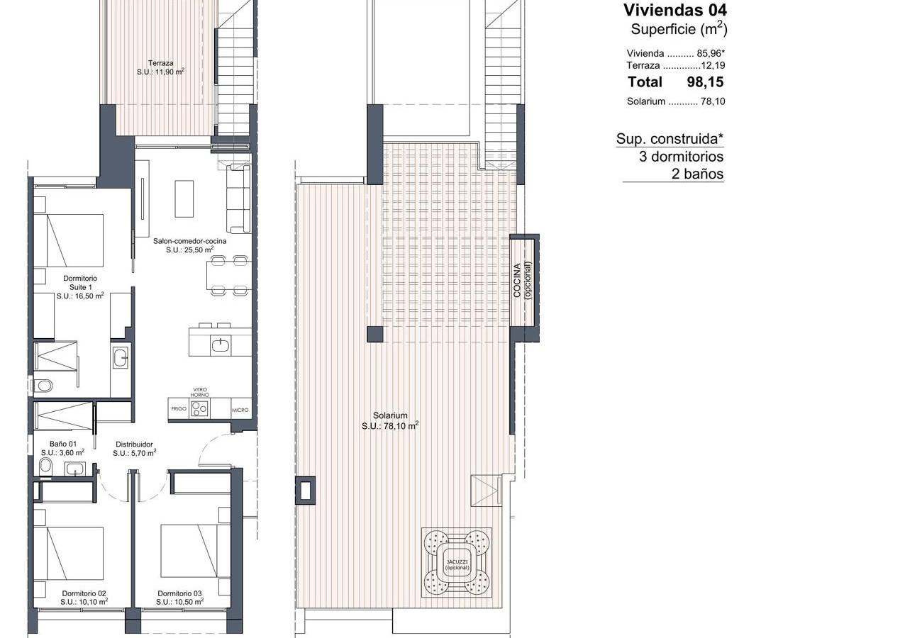 Nuevo bungalow 3 dormitorios, solárium 78m2, piscina comunitaria Ciudad Quesada - Lo Marabu - Alicante (Costa Blanca)
