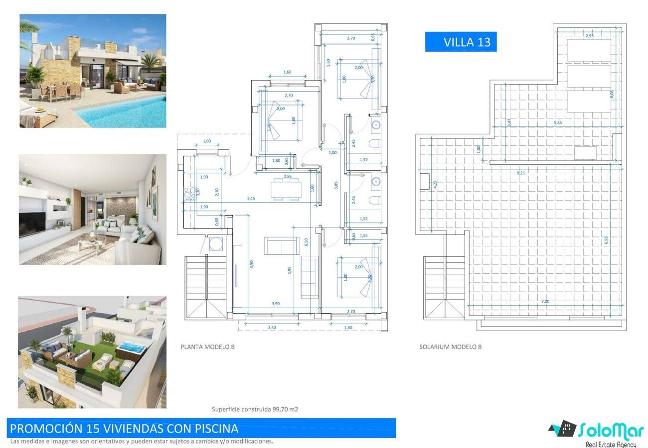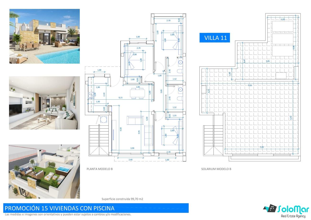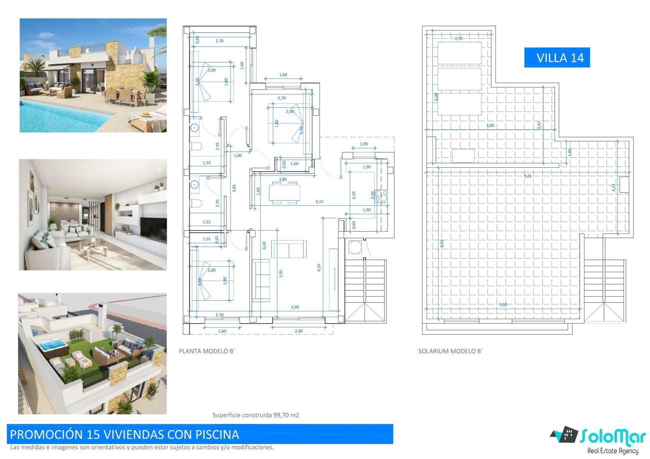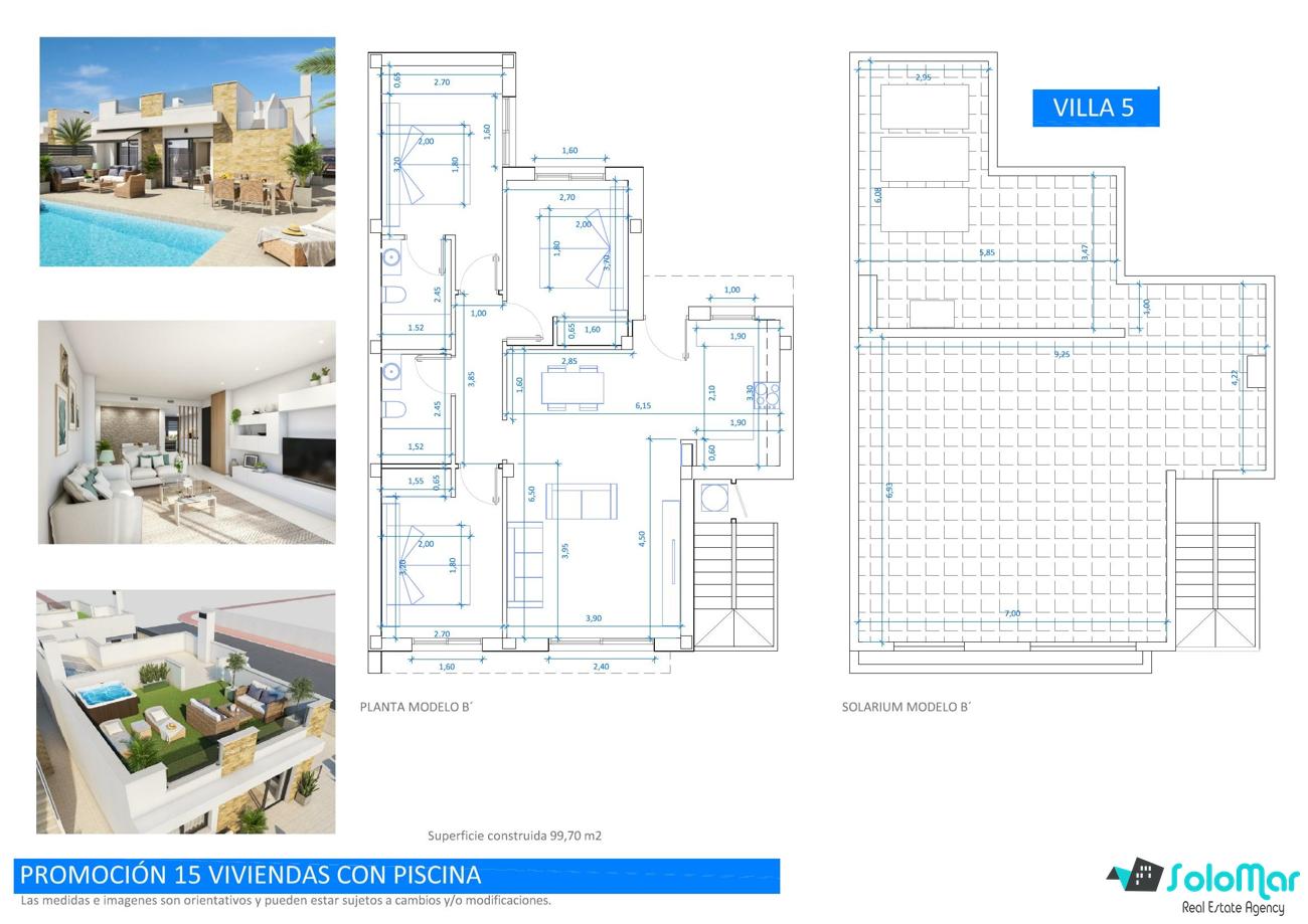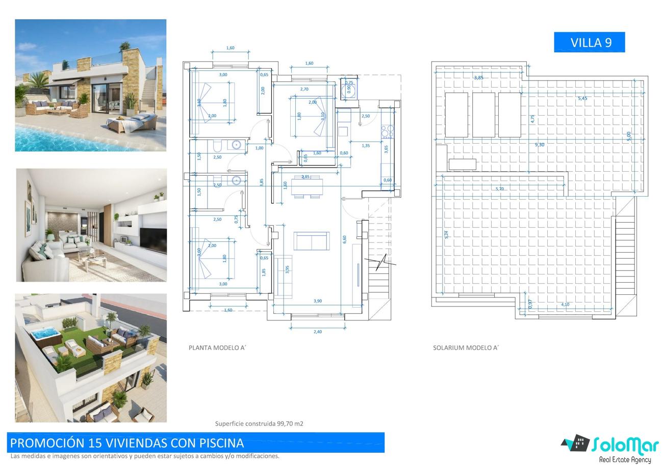 Con una superficie de 99 m² en una sola planta, las villas cuentan con salón abierto con cocina, tres dormitorios con armarios empotrados y dos baños, uno de ellos en suite.