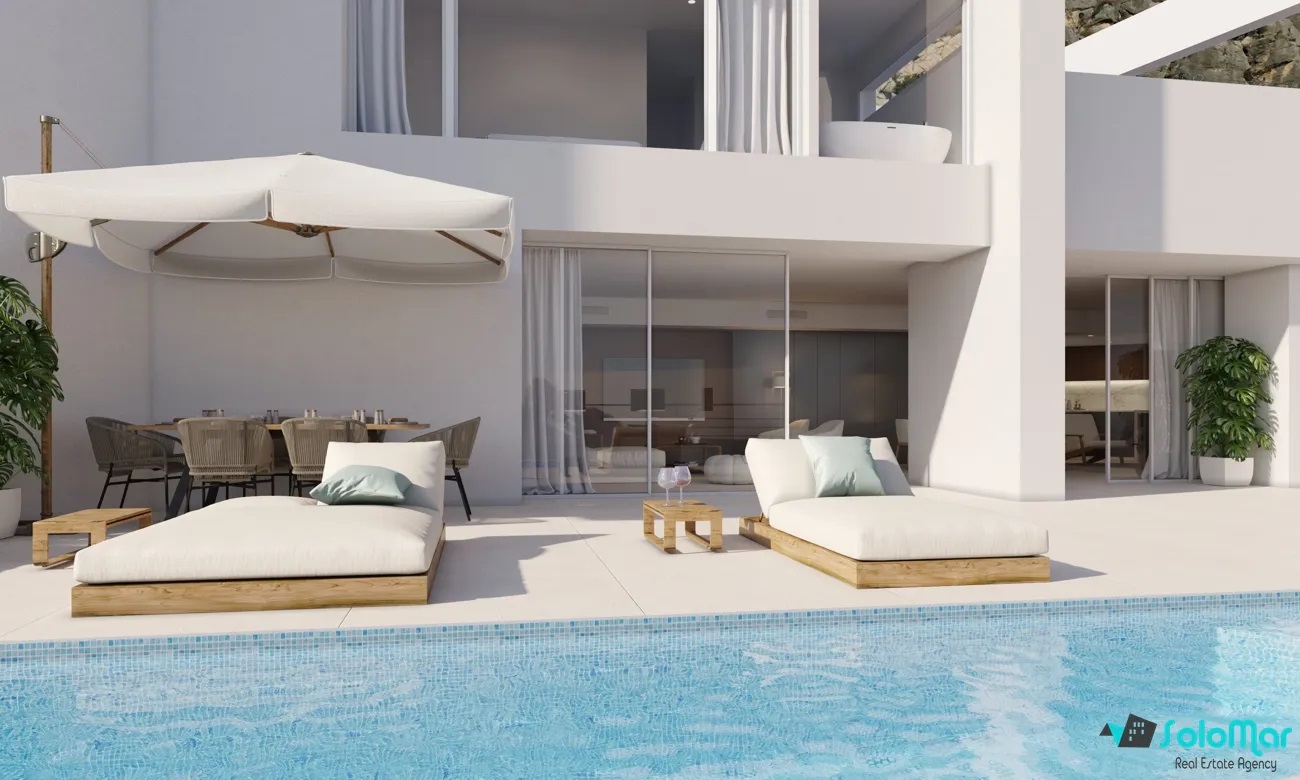 La vivienda ofrece cuatro dormitorios en suite (con opción a un quinto), varios salones, despacho, sala de billar y una zona de día que se abre completamente a la terraza con piscina. En la planta superior, una suite principal con vestidor, baño de lujo y terraza privada se convierte en un refugio exclusivo con vistas inigualables.